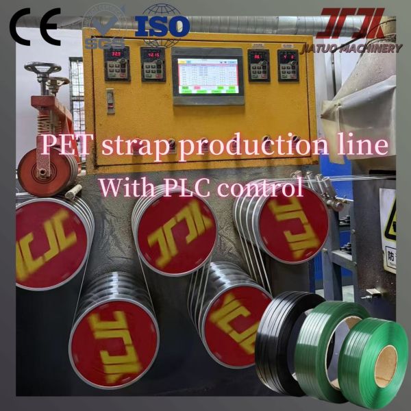 Full 9-32mm Automatic Polyester PET Strap Production Line make high strength PET belt with PLC control Images |